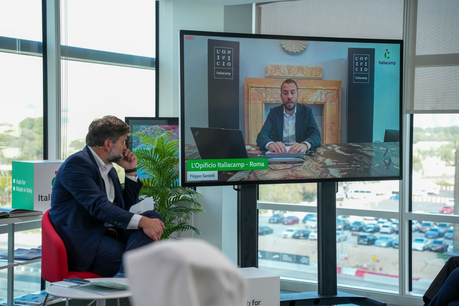 Al confronto hanno preso parte: · Filippo Santelli, Giornalista, La Repubblica; Leo Cisotta, General Manager, Italiacamp EMEA; Abdulla Alsaboosi, UAE Ambassador to the Republic of Italy; Federico Eichberg, Capo di Gabinetto, Ministero delle Imprese e del Made in Italy; Mohamed Sharaf, COO FDI, Dubai Department of Economy and Tourism; Mohammad Al Kassim, Director Europe & Americas, Dubai Chambers; Alessandra Salina Amorini, Lead Expert International Relations, Assolombarda; Ciro Aquino, MBA, Regional Manager Middle East, Head of Dubai Office, SACE; Roberto Luongo, Advisor of the Ministry of Enterprises and Made in Italy; Guido Fienga, Chairman, Italiacamp EMEA.